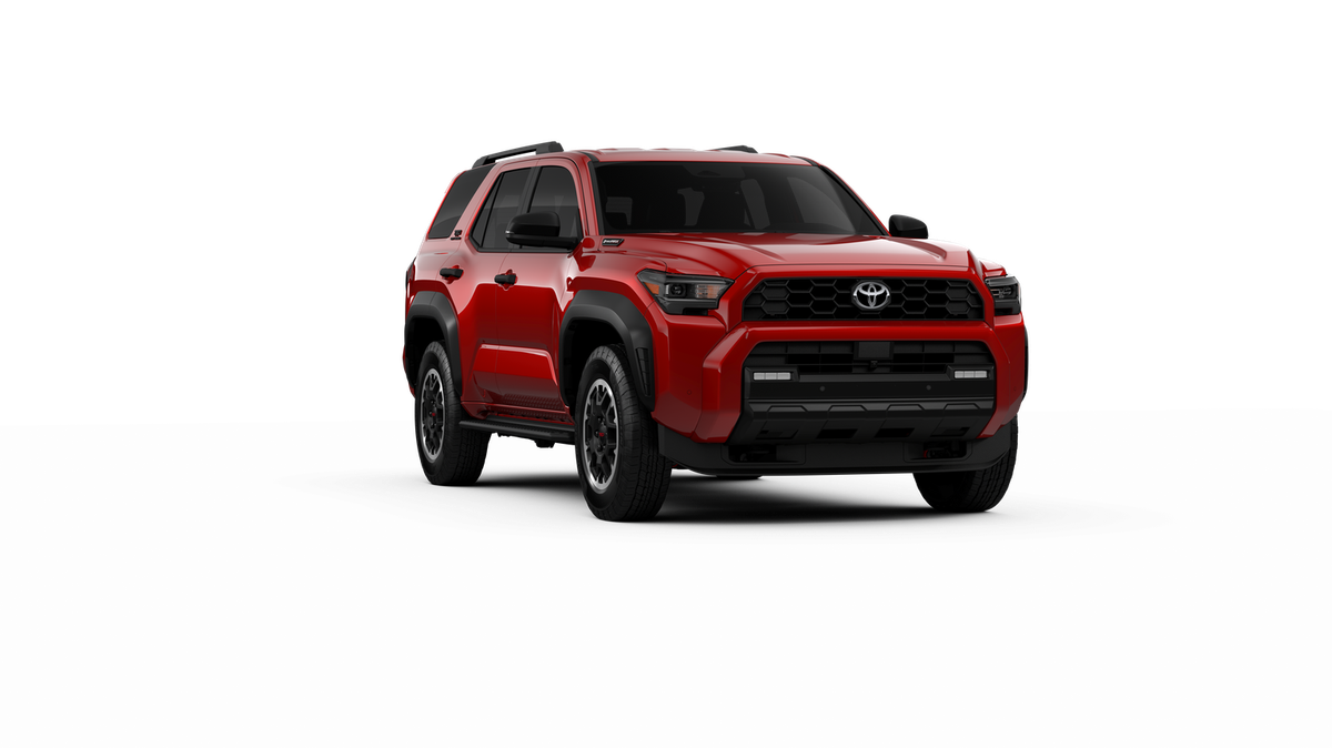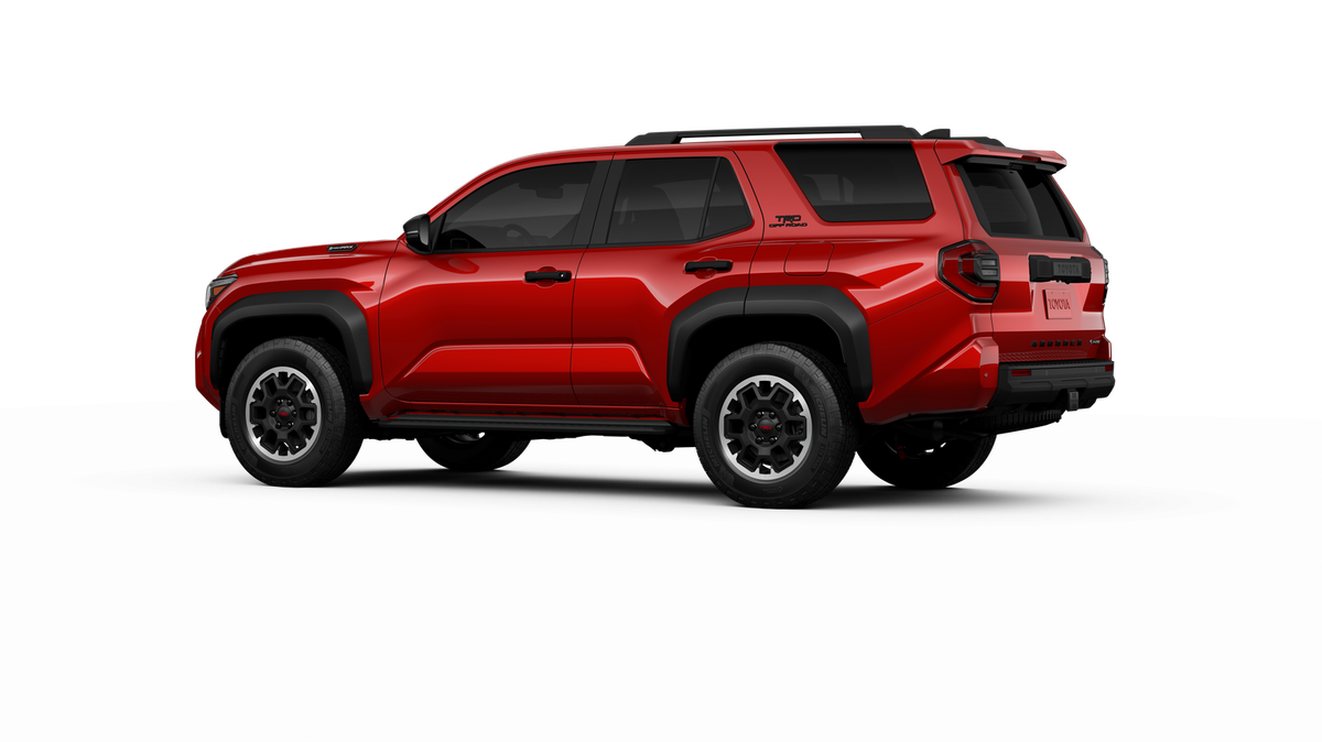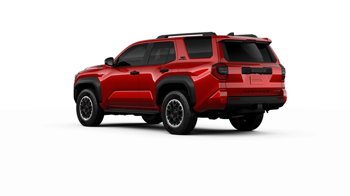 - Black honeycomb-style grille, mirror caps, door handles, and overfenders; color-keyed rear spoiler; black "TRD OFF ROAD" and "4RUNNER" badges