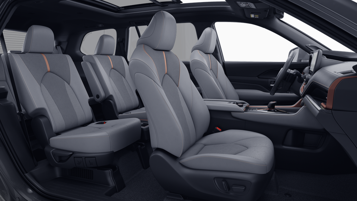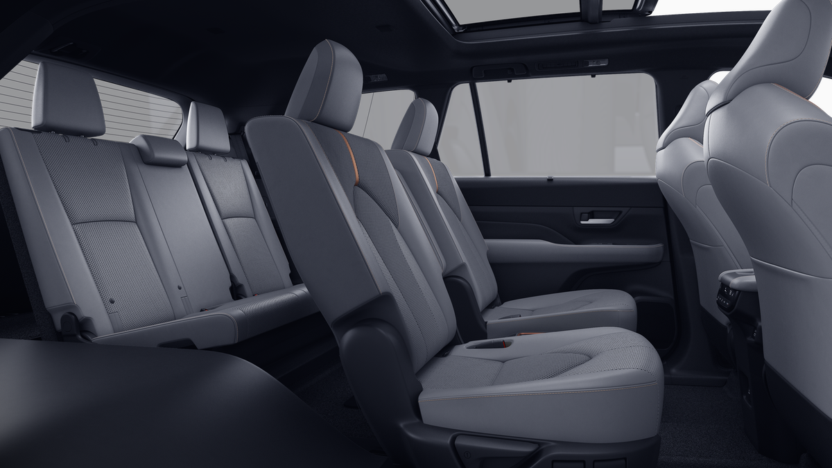 - 7-passenger seating with second-row fold-down captain's chairs and fold-down inboard armrests, adjustable headrests and two cup holders mounted on the floor; and 60/40 split, fold-down third-row seats with sliding headrests and recline function